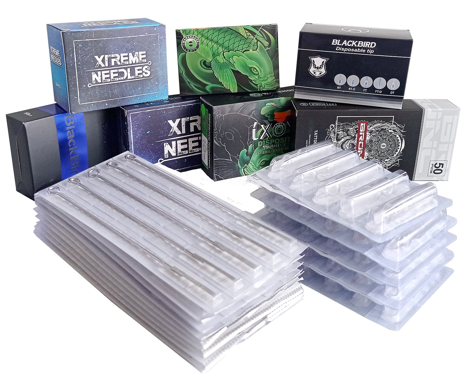Caja De Agujas Tatuar X 50 Unds Con Punteras Tattoo Surtidas