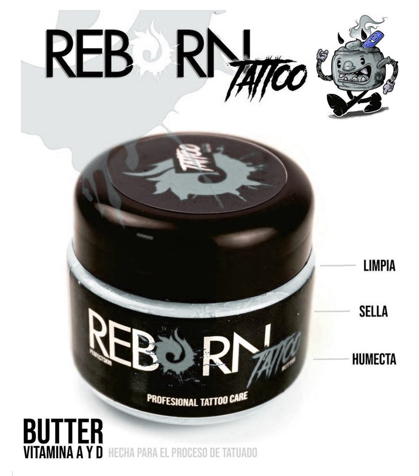 La Crema Butter Para Tatuajes Reborn 250gr está formulada para brindar hidratación intensa y protección a la piel durante y después del proceso de tatuaje. Su textura tipo butter facilita el deslizamiento durante la sesión, ayudando a mantener la piel lubricada y en mejores condiciones de trabajo.