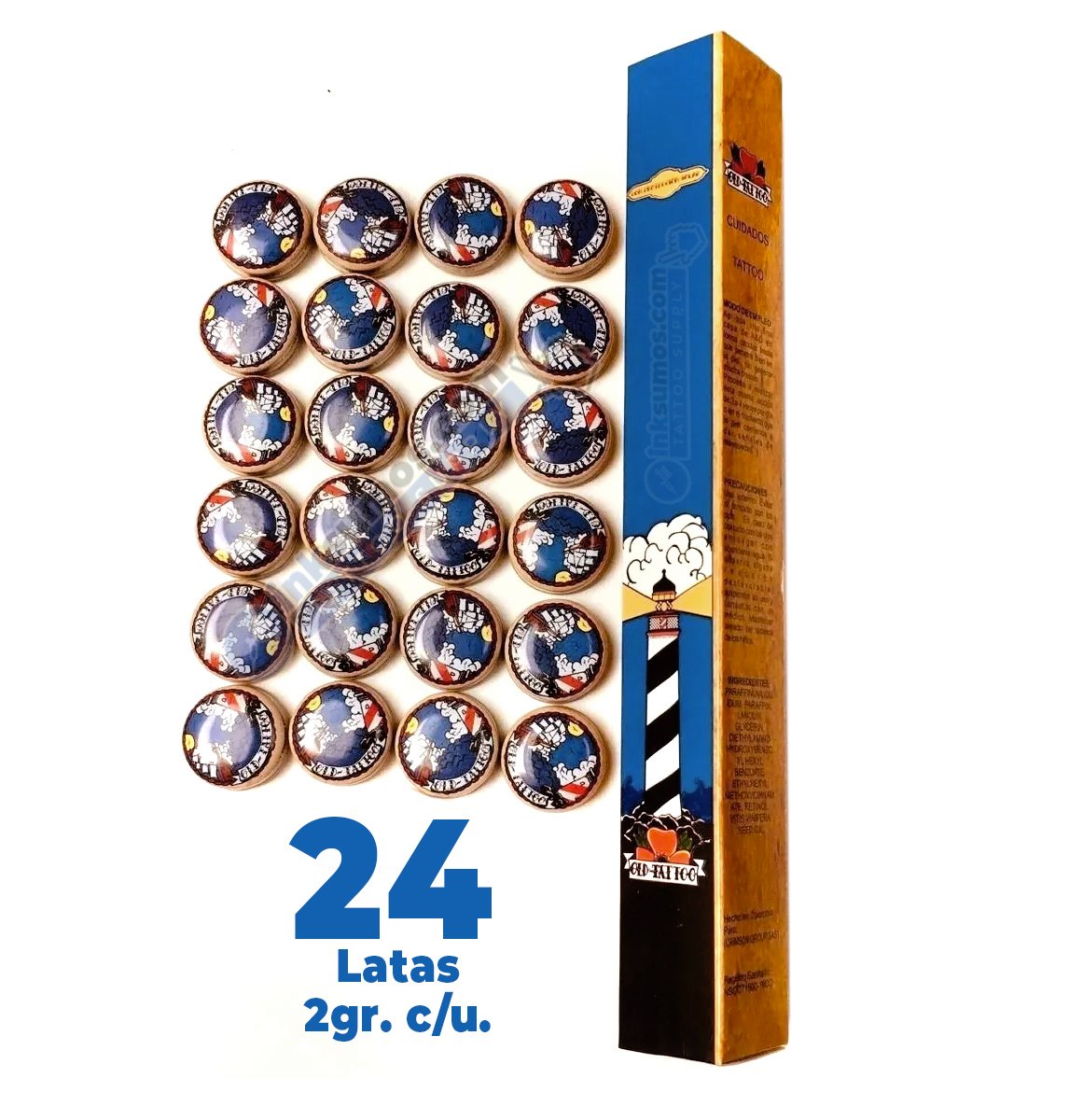 La Crema Old Tattoo Mini Torre en presentación de 24 latas de 2 g está diseñada para el cuidado de la piel durante el proceso de tatuado, ayudando a lubricar, proteger y reducir la irritación. Su formato mini es ideal para mantener la higiene y facilitar el uso individual durante cada sesión.