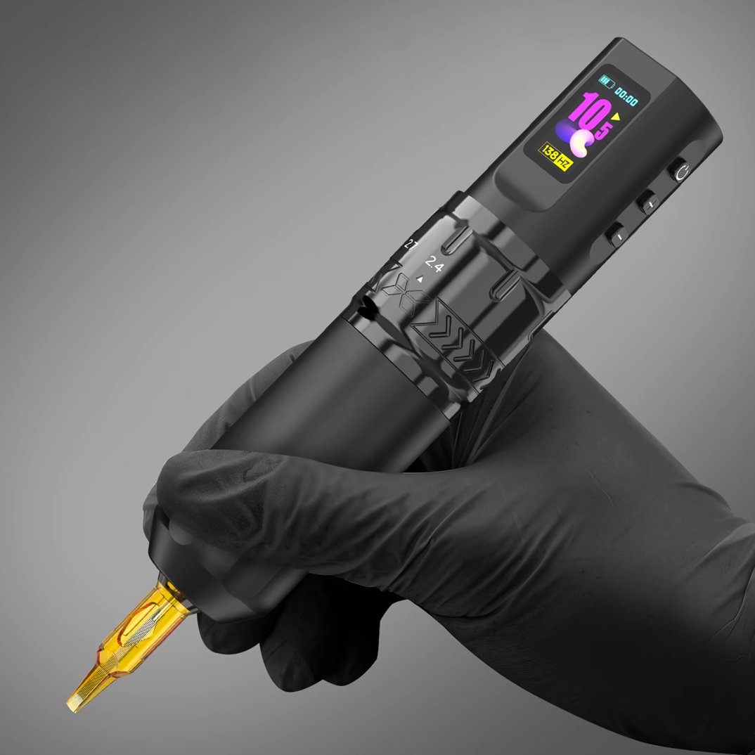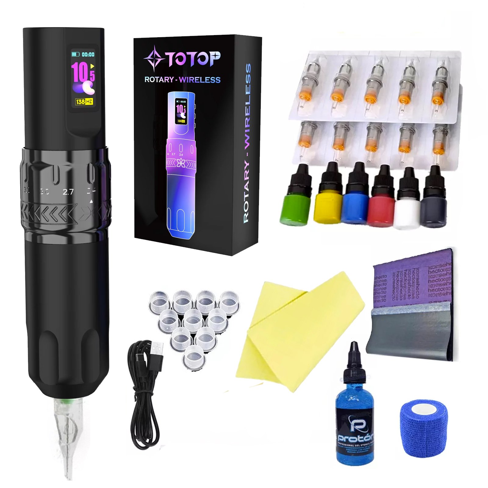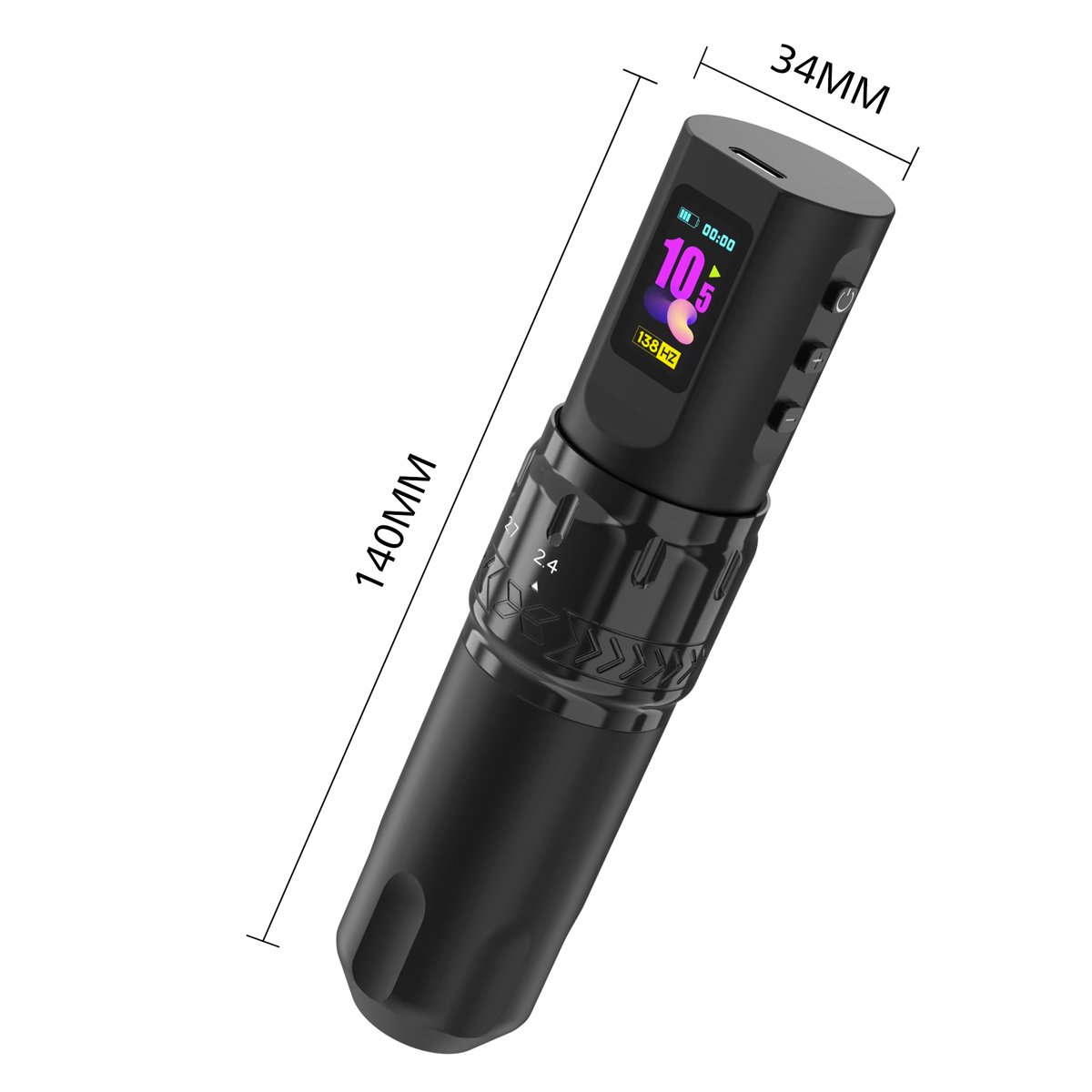 Maquina Pen Inalambrica Totop Stroke Ajustable En Kit Negro, Este Pen para tatuar está hecho de aluminio espacial, con una estabilidad duradera. Motor de alta velocidad, mayor eficiencia, ahorro de tiempo y esfuerzo. La mejor opción para uso profesional.